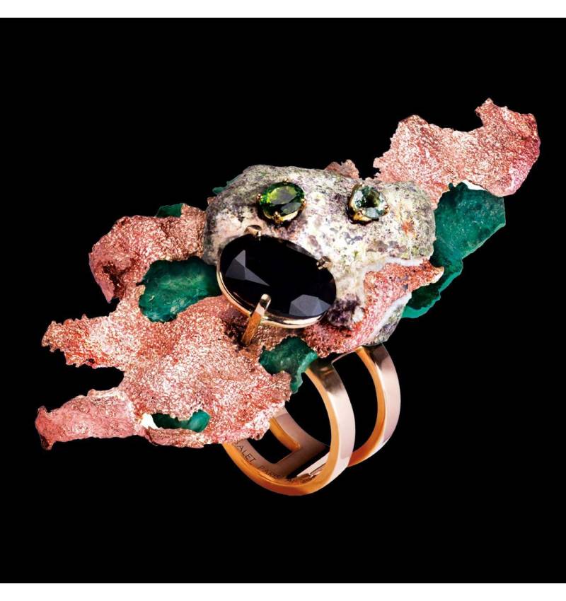 长蛇座戒指,天然铜,孔雀石,黑色石英和红金,我的气息星座。古中文亦称为柳宿二。