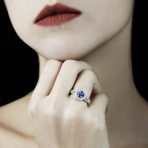 Bague en or 18 k (2,8 g), pierre centrale saphir bleu ovale pavage diamant (0,22 carat) ou diamant noir (0,22 carat) ou émeraude (0,17 carat) ou rubis (0,24 carat) ou saphir bleu (0,24 carat) ou saphir rose (0,24 carat)