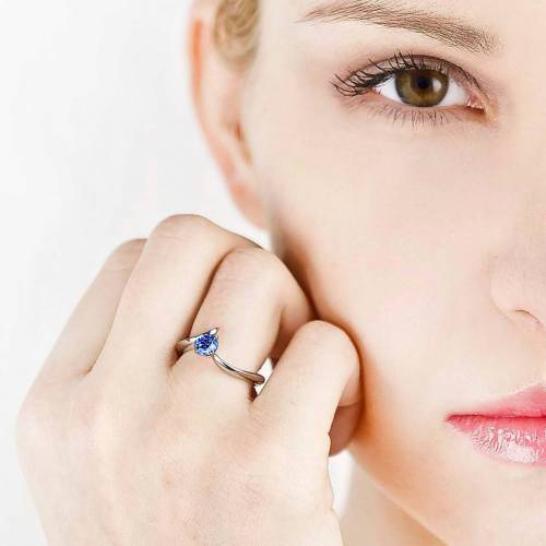 Bague en or 18 K (2,8 g), pierre centrale saphir bleu (1 carat; 1,5 carat, 2 carats) et pavage diamant (0,12 carat) ou rubis (0,13 carat) ou émeraude (0,09 carat) ou saphir bleu (0,13 carat) ou saphir rose (0,13 carat) ou diamant noir (0,12 carat)