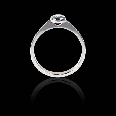 Bague en or 18 k (2,8 g), pierre centrale diamant ovale, pavage diamant (0,22 carat) ou diamant noir (0,22 carat) ou émeraude (0,17 carat) ou rubis (0,24 carat) ou saphir bleu (0,24 carat) ou saphir rose (0,24 carat)