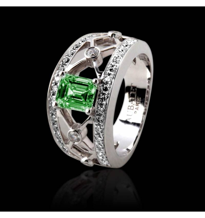 Bague pierre centrale Emeraude or 18K, pavage diamants ou autres pierres précieuses