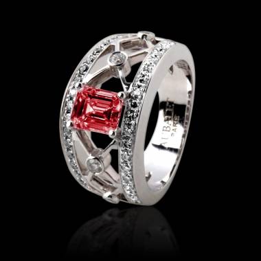 Bague pierre centrale Rubis (1 à 2 ct) Or blanc 18K (11g) ou Or jaune (10.4g), pavage diamants (0.63 ct) ou pierres précieuses.